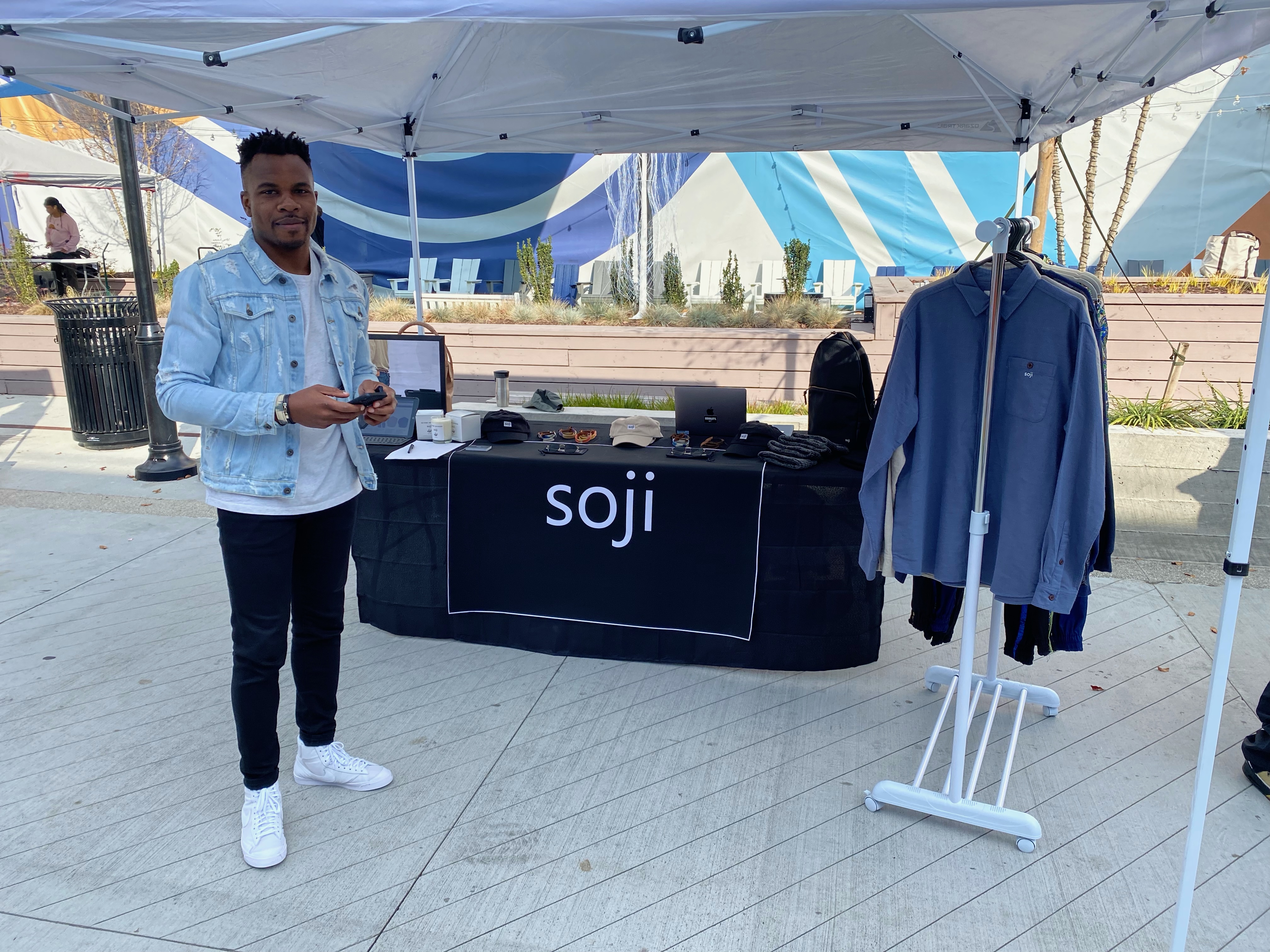 Sheyi: Yeah, we’ll be releasing it in March so definitely stay tuned. I noticed that I was falling into “a sea of sameness.” Right now you can go to the website and find a backpack or a jacket, and while there is some difference to it, you could largely find something similar but in a different color or fabric from a different brand. As I’ve been doing more market research and travel for Nike and really seeing more brands across the world (from LA to London), there’s a surprisingly similarity between quite a few of them. Their overall goal was never to hyper-focus on profitability, but to tell a story that was uniquely theirs. So taking that concept, it was natural to go back to my Nigerian roots to say “how can I make these pieces more personal while also getting people excited about it?” The answer was to make everyday things that everyone will always need (t-shirts, lightweight jackets, etc) but continuing to tell the brand story within it. I’m trying to transition from nice, everyday attire to everyday classic attire with Nigerian fabric accents. The focus is on quality, authenticity and uniquely Soji fabric. And I think once people start understanding there’s a purpose behind everything I do, they’ll gravitate to that. Because who doesn’t love a good story?