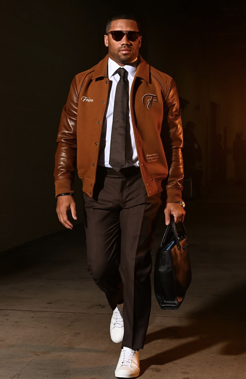 Russ took over the QB1 spot from Justin Fields earlier this season, but also clearly took the lead with his outfits. This shouldn’t be a surprise given that he’s also the founder of Good Man Brand, a brand that within a few years of inception was already selling at stores like Nordstrom and Saks Fifth Avenue. He and his wife Ciara also started The House of LR&C, the holding company for Good Man Brand as well as a few other lines they’re looking to expand to various audiences.